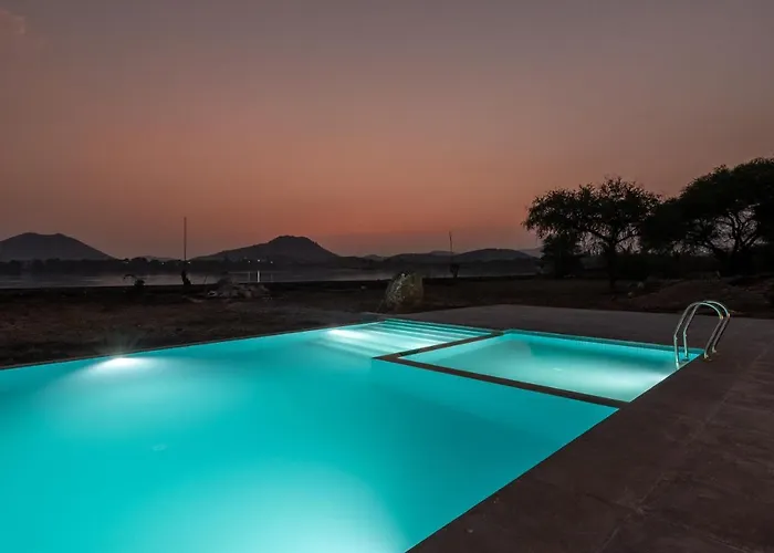 En køretur til Maharana Pratap lufthavn vil tage lidt over 22 minutter. Strandfaciliteter på 1Br Cottage With Pool - Lake Escape By Roamhome omfatter liggestole.
